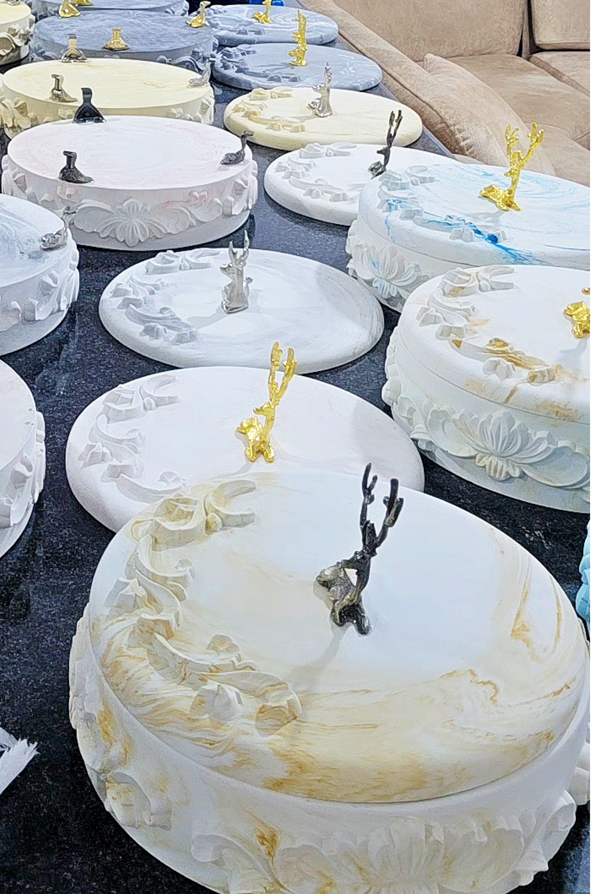 ست جاشکلاتی درب دار با ۳ پایه و دستگیره طلایی ، گلدان