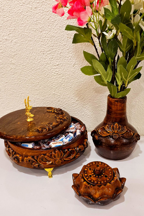 ست شامل شکلات خوری درب دار/ گلدان/ جا عودی درب دار