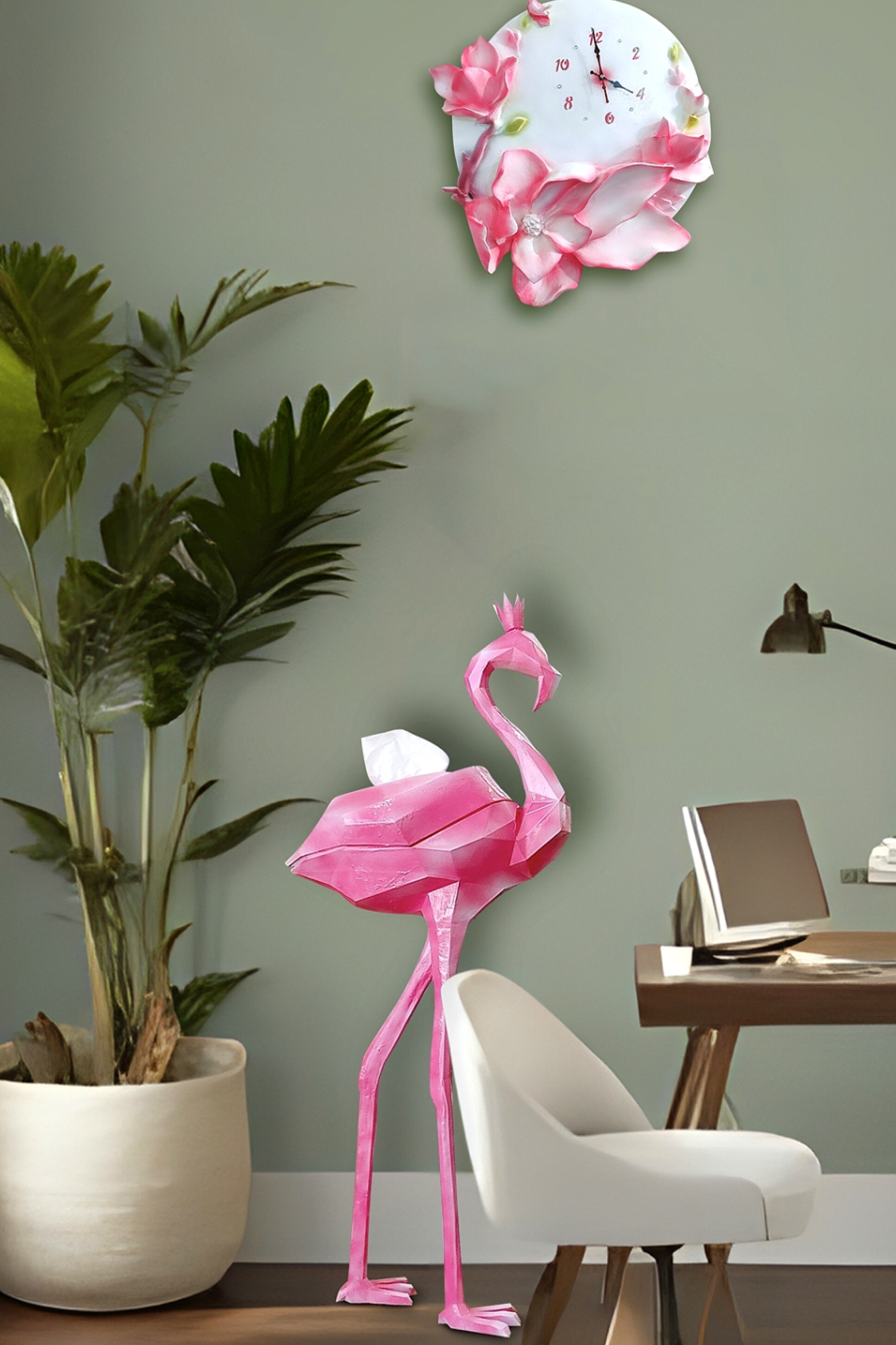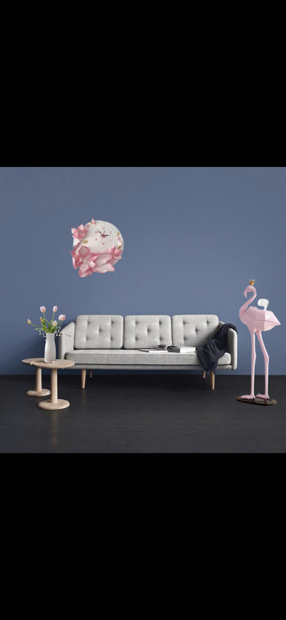 ساعت دیواری فایبرگلاس، طرح زیبای گل، قابل اجرا در رنگهای متنوع