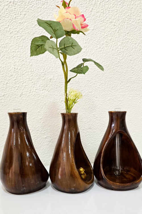 ست گلدان، گلجای، شیشه، گل سنگی، طرح چوب، قابل شستشو، مناسب گل طبیعی و مصنوعی.