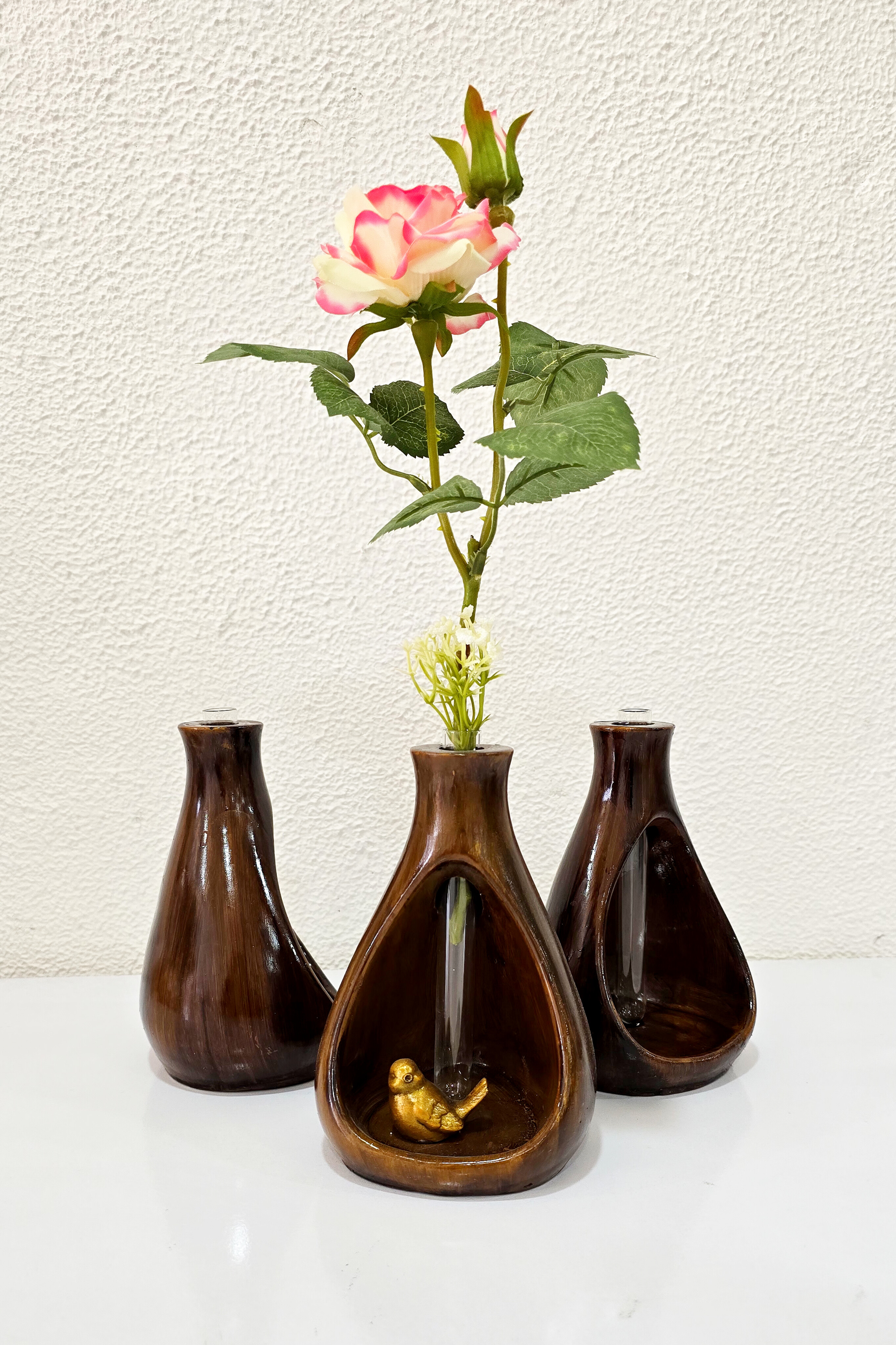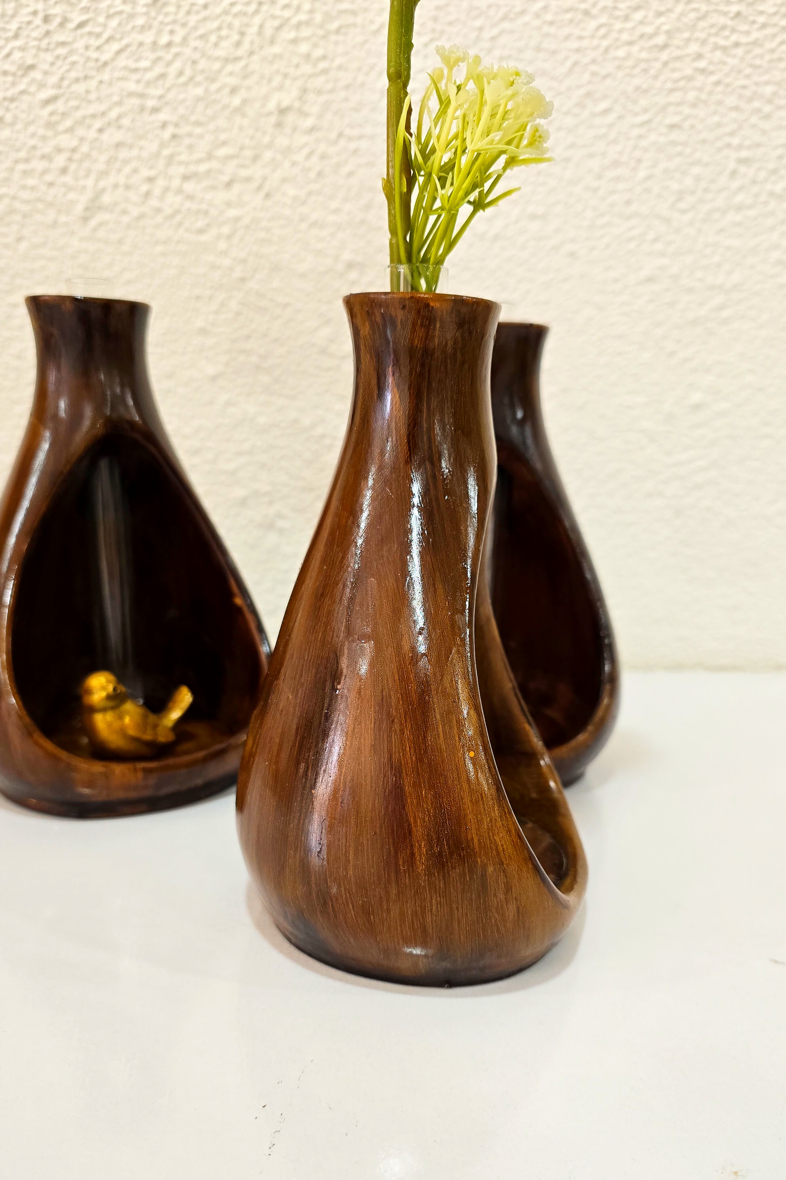 ست گلدان، گلجای، شیشه، گل سنگی، طرح چوب، قابل شستشو، مناسب گل طبیعی و مصنوعی.